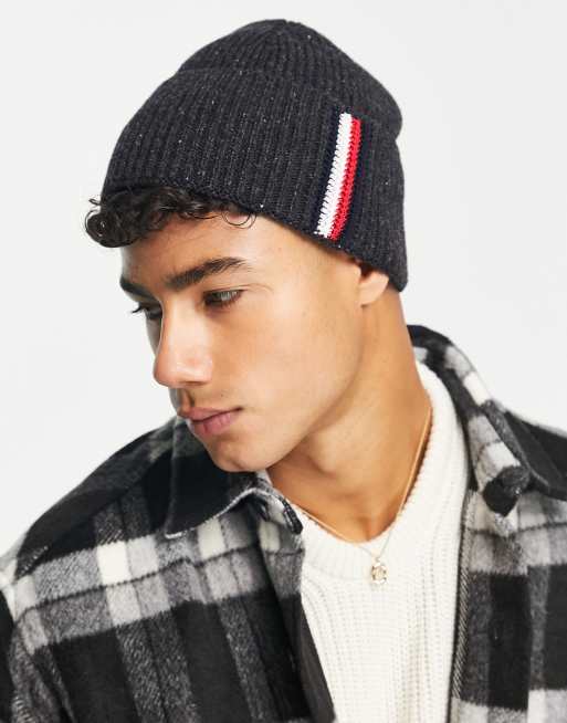 Tommy Hilfiger - Ribstrikket hue i sort med stribe i siden