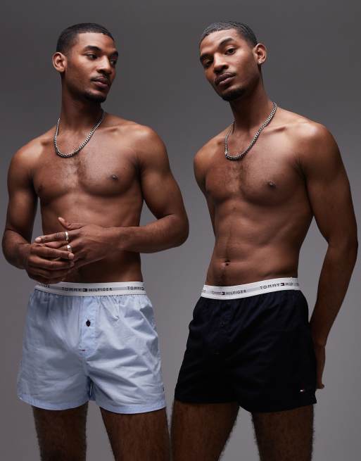 Tommy Hilfiger - Signature Cotton Essentials - Pakke med 2 par vævede boksershorts i marineblå/lyseblå