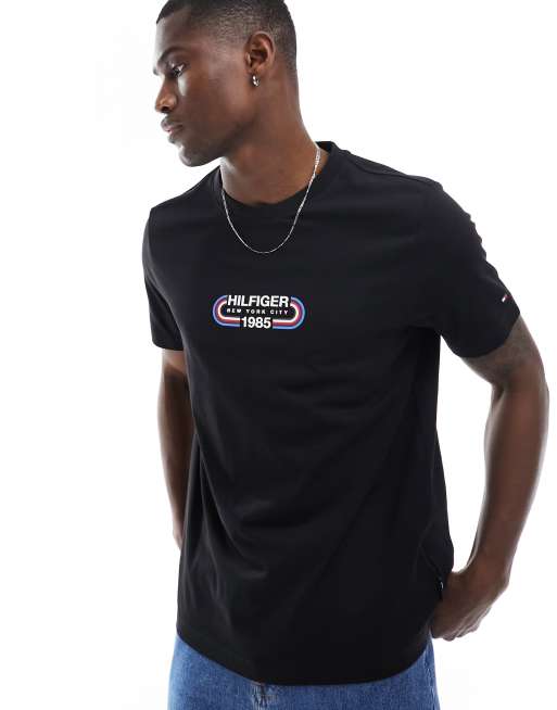 Tommy Hilfiger - Sort T-shirt med 'Hilfiger'-banegrafik