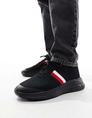 Tommy Hilfiger - Sorte, moderne, strikkede, stribede og essentielle sneakers