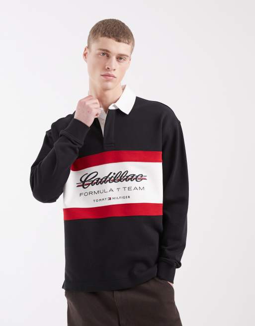 Tommy Hilfiger x Cadillac - Sort rugby-skjorte med paneler og 'Formula 1'-print