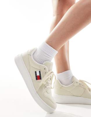 Tommy Jeans - Beige basketball-sneakers med retro-design i kanvas