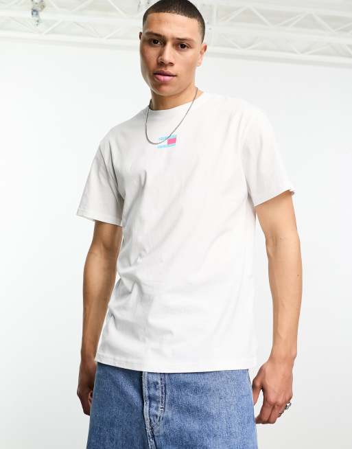 Tommy Jeans - Hvid klassisk T-shirt med centreret flag i signalfarver