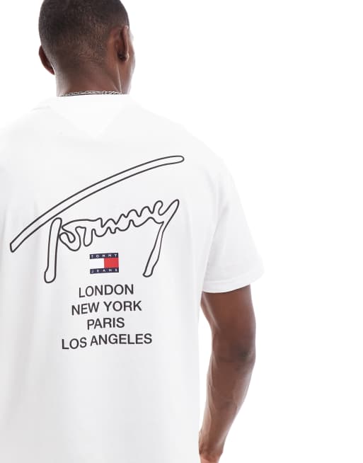 Tommy Jeans - Hvid T-shirt med byprint og signaturlogo på ryggen