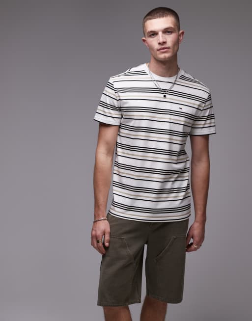 Tommy Jeans - Hvid T-shirt med logo og striber