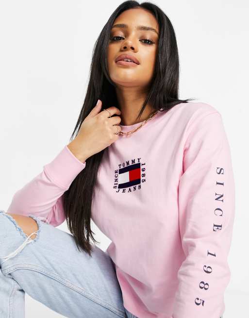 Tommy Jeans - Langærmet T-shirt med flag i pink