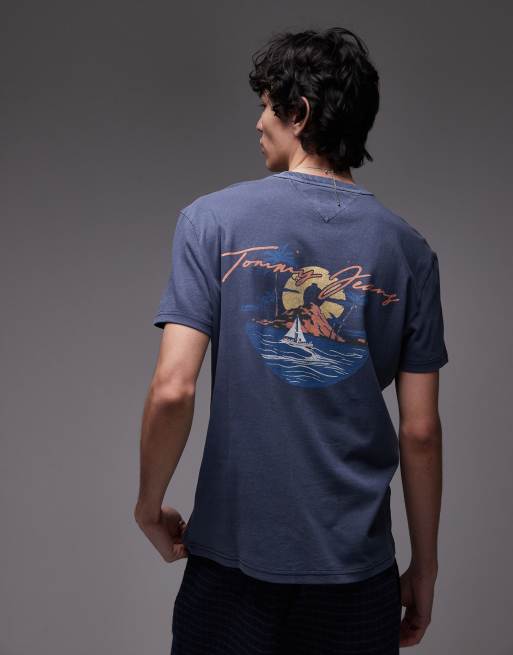 Tommy Jeans - Marineblå T-shirt med sejlergrafik på ryggen