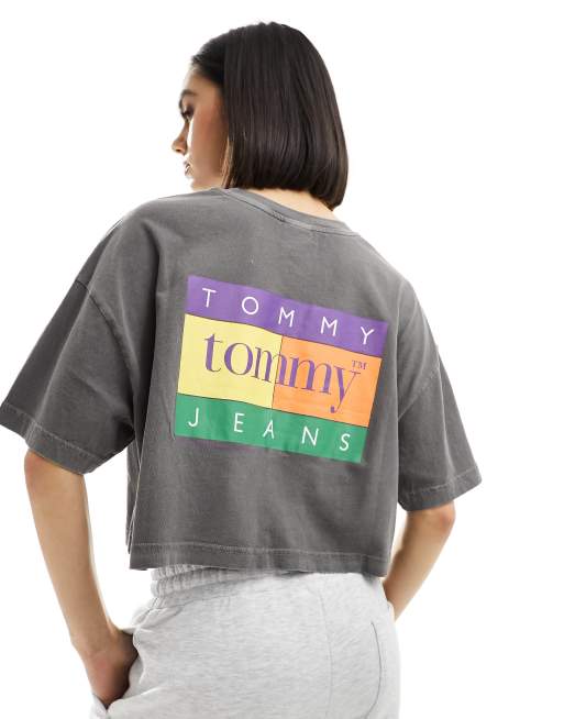 Tommy Jeans - Oversized, cropped T-shirt med sommerligt flaglogo i sort