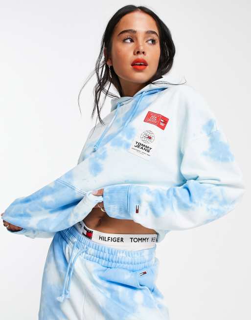 Tommy Jeans - Oversized hættetrøje i blå tie-dye - Del af sæt