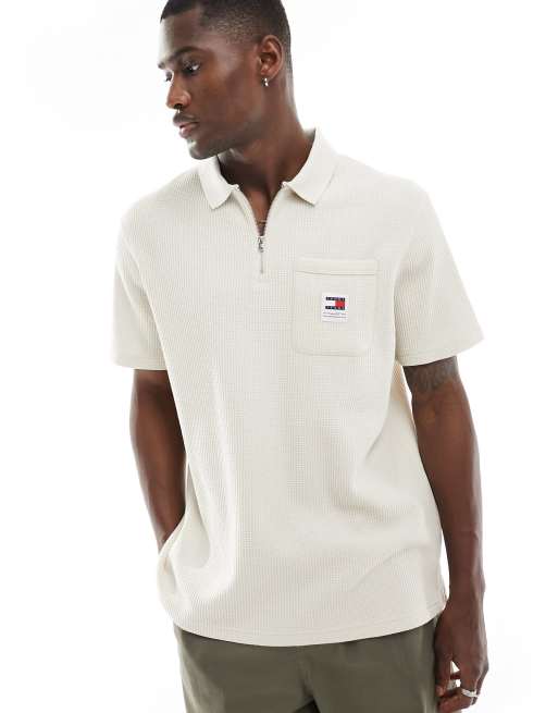 Tommy Jeans - Oversized poloskjorte med vaffeltekstur i offwhite