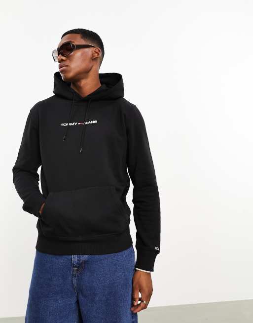 Tommy Jeans - Sort hættetrøje i regular fit med lineært logo