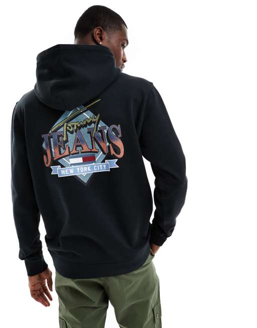 Tommy Jeans - Sort hættetrøje med grafisk rygprint