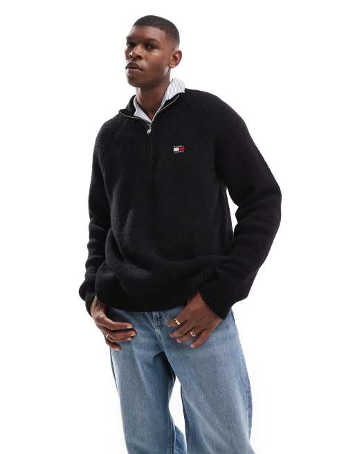 Tommy Jeans - Sort striktrøje med 1/4 lynlås og logomærke
