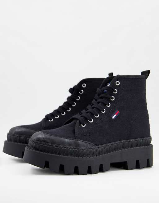 Tommy Jeans - Sorte snørestøvler med flaglogo