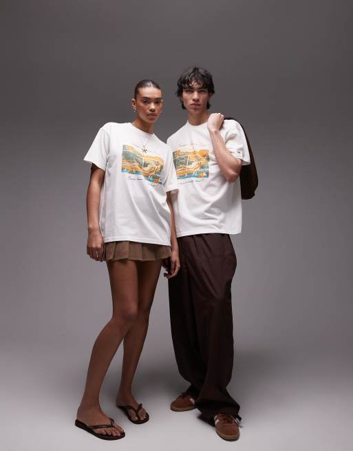 Tommy Jeans - Unisex - Hvid T-shirt med "beach club"-grafik