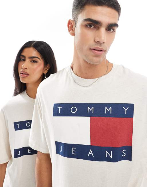 Tommy Jeans - Unisex - Råhvid T-shirt med stort flaglogo