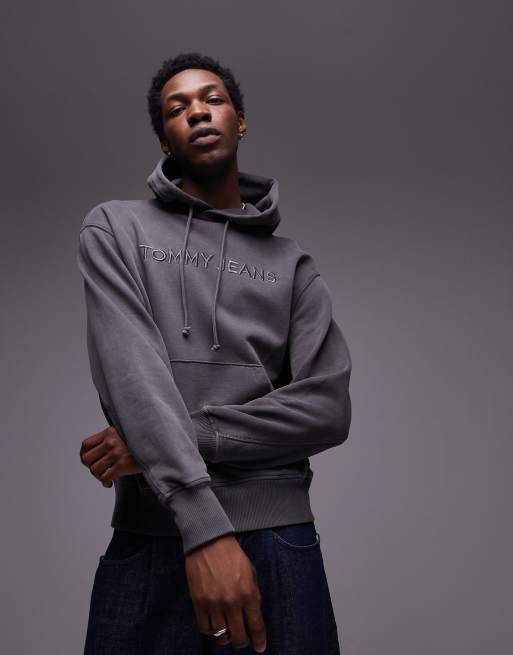 Tommy Jeans - Vasket sort hættetrøje med tonet logo