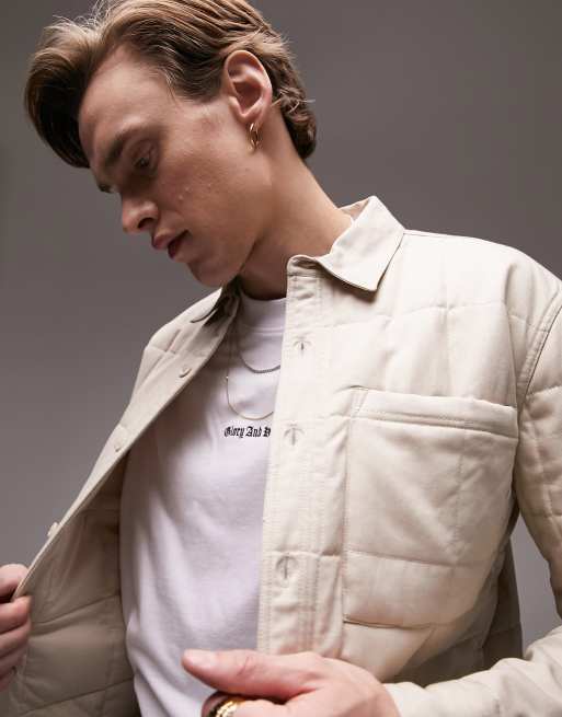 Topman - Beige og vatteret overskjorte med lange ærmer i almindelig pasform