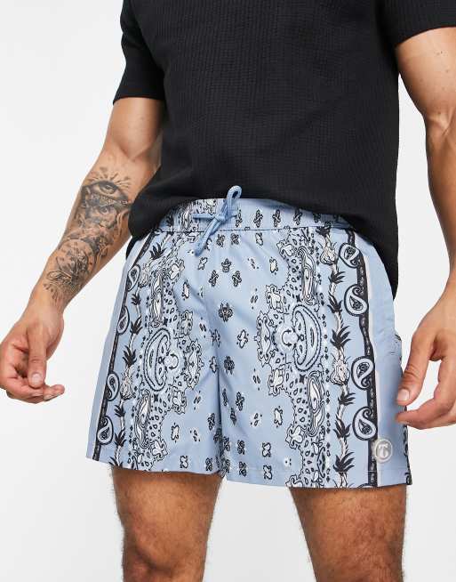 Topman - Blå badeshorts med bandanaprint
