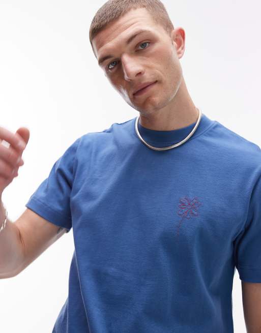 Topman - Blå og cropped T-shirt med blomsterbroderi