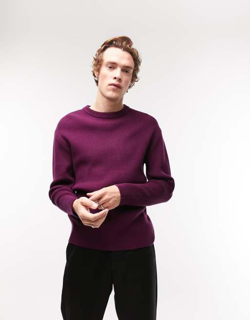 Topman - Bordeauxfarvet ribstrikket trøje med rullekrave