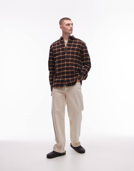 Topman - Brun-ternet skjorte med lange ærmer i børstet stof