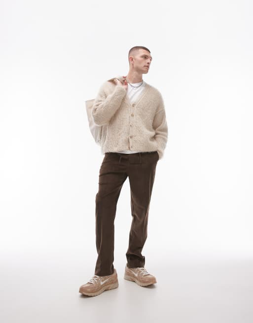 Topman - Brune joggingbukser med lige ben i fløjl