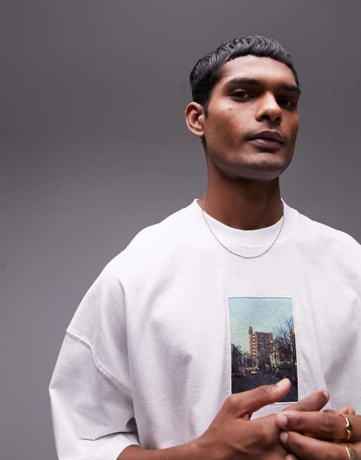 Topman - Ekstremt oversized hvid T-shirt med højhus-print