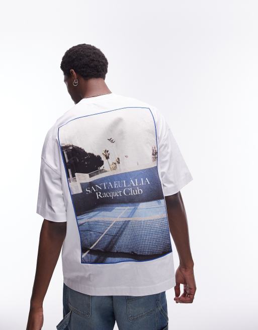 Topman - Ekstremt oversized hvid T-shirt med 'Racquet Club'-print på front og ryg