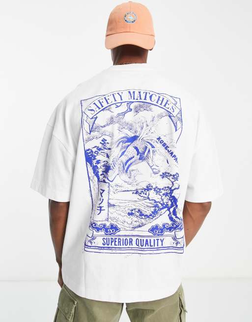 Topman - Ekstremt oversized t-shirt med 'matches'-print foran og bagpå i hvid