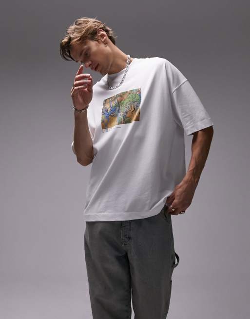Topman - Ekstremt oversized T-shirt med Tree Roots-print i hvid - Samarbejde med Van Gogh Museum