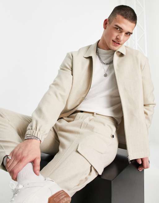 Topman - Harrington-jakke råhvid flannel - Del af sæt