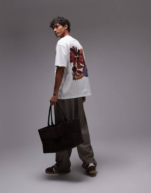 Topman - Hvid T-shirt med malet collage-print foran og bagpå i afslappet pasform