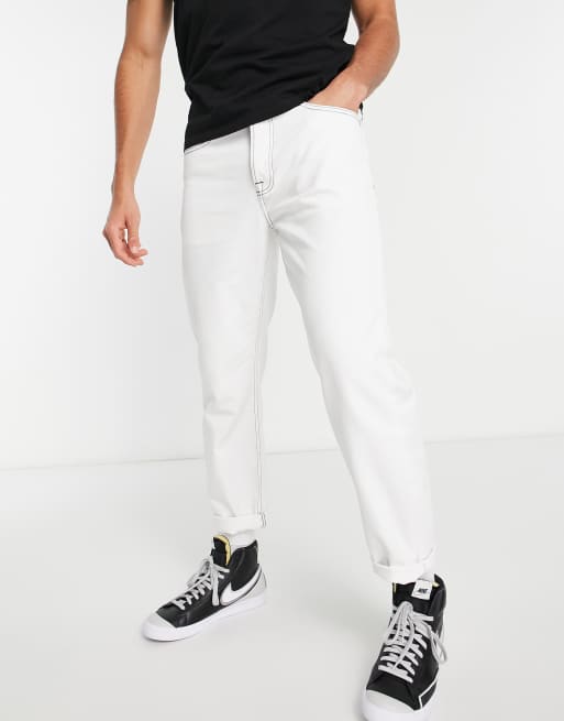 Topman - Hvide jeans med kontrastsømme i afslappet pasform