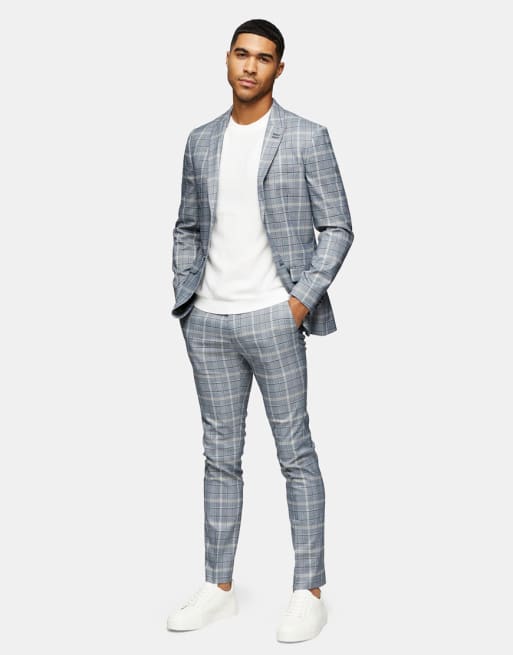 Topman - Jakkesæt med habitvest med grå tern i skinny fit