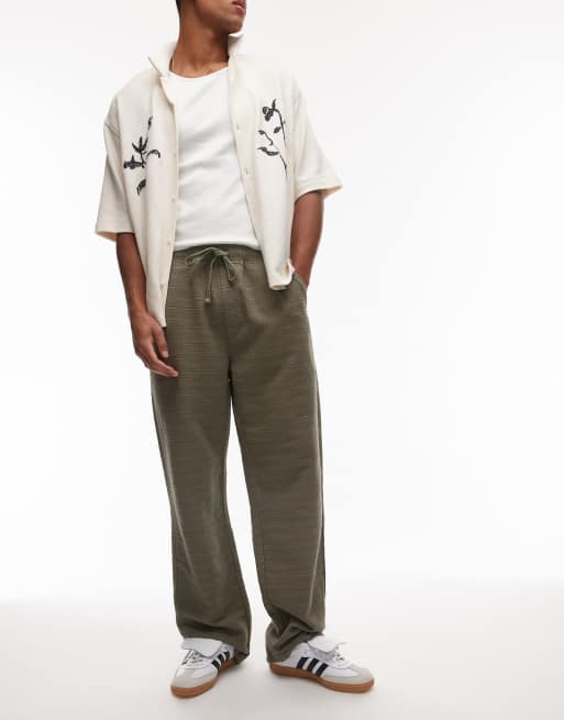 Topman - Kakifarvede bukser med baggy pasform og tekstur