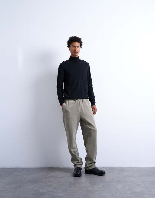 Topman - Kakifarvede forvaskede joggingbukser i kraftigt materiale med lige ben