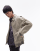 Topman - Kakigrøn bomber-jakke i vasket denim i afslappet pasform