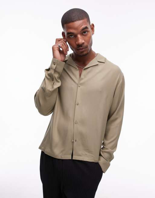 Topman - Kakigrøn skjorte med lange ærmer i viskose