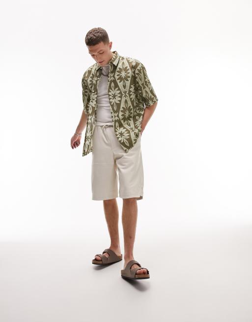 Topman - Kortærmet og afslappet skjorte med blomsterprint i grøn