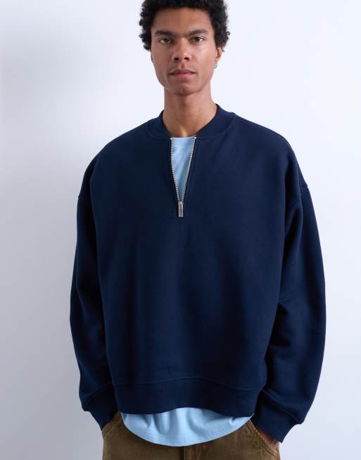 Topman - Marineblå bomber-jakke med 1/4-lynlås