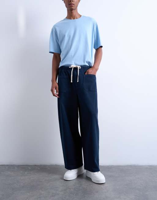 Topman - Marineblå bukser med tøndeformede ben og bindedetalje