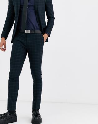 Topman — Marineblå habitbukser med ekstra smal pasform og tern