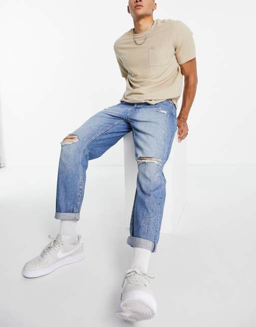 Topman - Mellemvaskede jeans med flænger i afslappet pasform