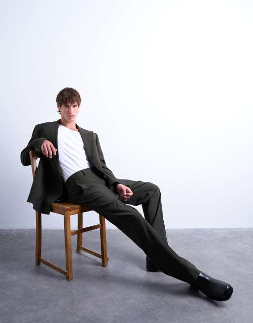Topman - Mørkegrønne bukser med lige ben i uldlignende materiale