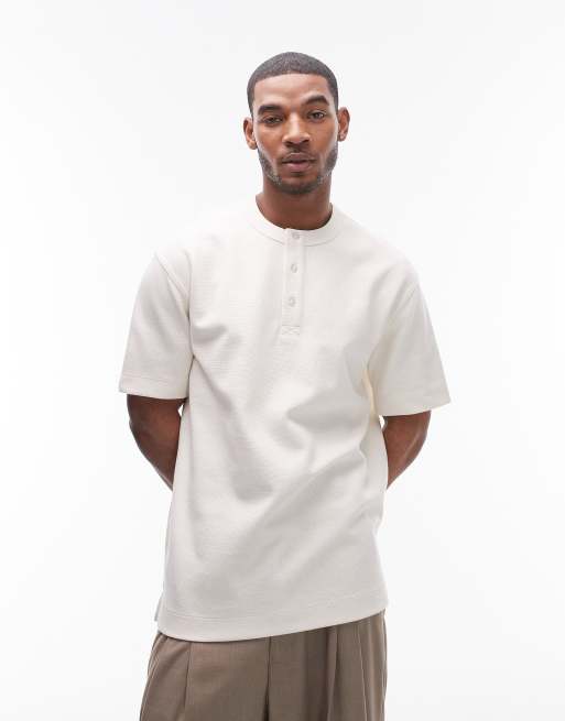 Topman - Oversized Henley-T-shirt med tekstur i kraftigt, ecrufarvet stof