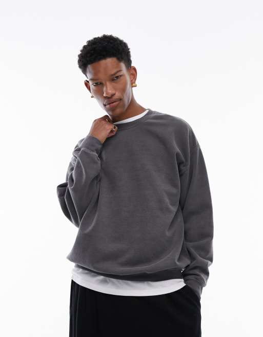 Topman - Oversized sweatshirt i vasket sort