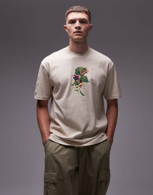 Topman - Oversized T-shirt med fuglebroderi i beige