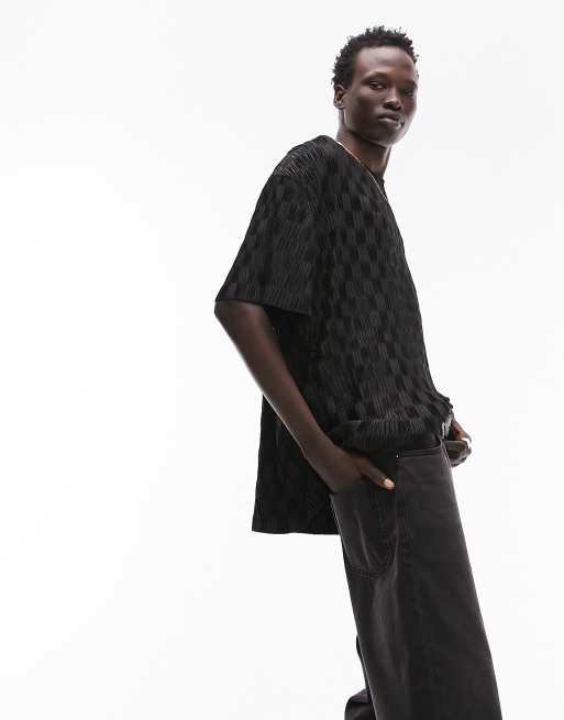 Topman - Oversized T-shirt med jacquard-plisseringer i sort