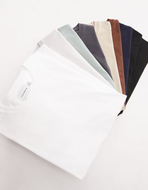 Topman - Pakke med 10 klassiske T-shirts i sort hvid marineblå koksgrå salviegrøn beige brun og lysegrå